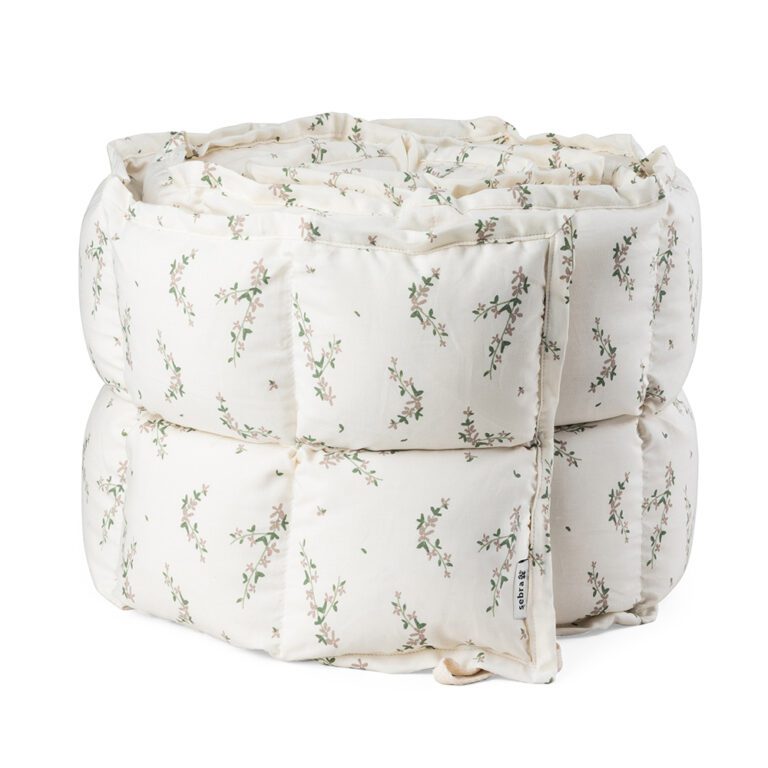 Creëer een veilig en knus babybed met deze gewatteerde babybedbumper van Sebra. Gevuld met kapok, een natuurlijke vezel met antibacteriële eigenschappen, is het ideaal voor mensen met allergieën en biedt het uitstekende warmteregulering. Bovendien is kapok duurzaam en biologisch afbreekbaar, wat het een milieuvriendelijke keuze maakt. Kies voor de natuurlijke bescherming en het comfort van kapok voor je baby!
