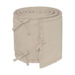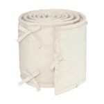 De buitenstof is gemaakt van 100% biologisch katoen, wat heerlijk zacht aanvoelt en geschikt is voor de gevoelige babyhuid. De vulling van 100% polyester zorgt voor een lichte maar beschermende ondersteuning. Naast het praktische beschermende effect geeft de bedbumper ook een rustige en stijlvolle uitstraling aan het babybed.