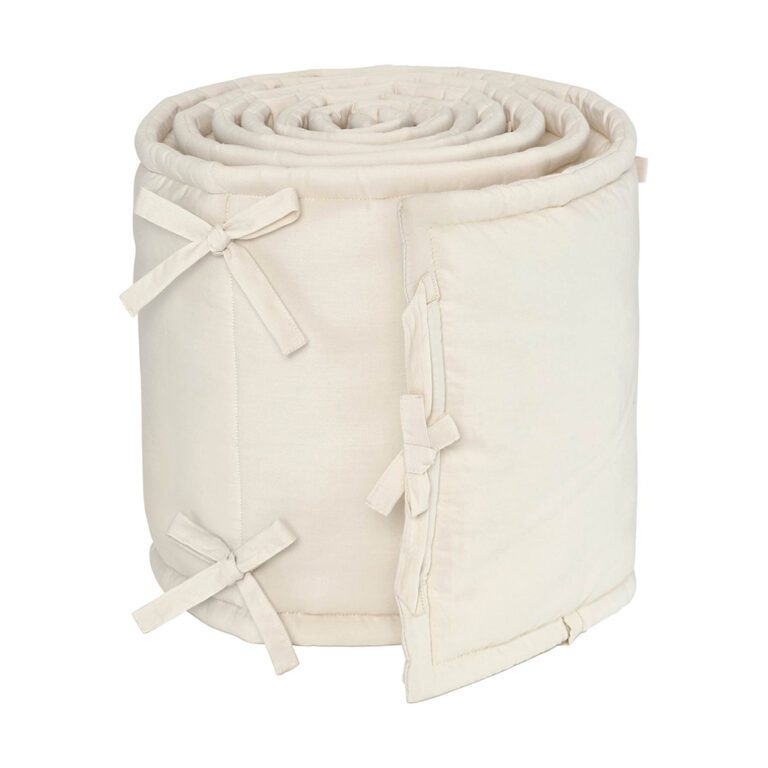 De buitenstof is gemaakt van 100% biologisch katoen, wat heerlijk zacht aanvoelt en geschikt is voor de gevoelige babyhuid. De vulling van 100% polyester zorgt voor een lichte maar beschermende ondersteuning. Naast het praktische beschermende effect geeft de bedbumper ook een rustige en stijlvolle uitstraling aan het babybed.
