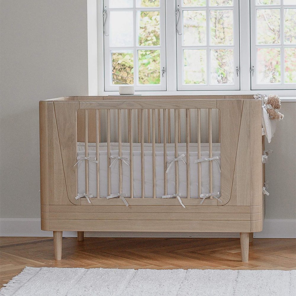 Deze bedbumper is speciaal ontworpen voor het babybedje van We Are Bitte en sluit perfect aan rondom het bed. Dankzij de afmetingen van 367 x 30 cm vormt hij één geheel met het bedje en draagt hij bij aan een geborgen en comfortabele slaapomgeving voor je baby.