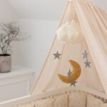 De wolk van 20 cm heeft kleine fluwelen sterren en een gevilte maan die sierlijk bungelen. De zachte bewegingen van de mobiel trekken de aandacht van je kleintje en bieden een rustgevend effect.