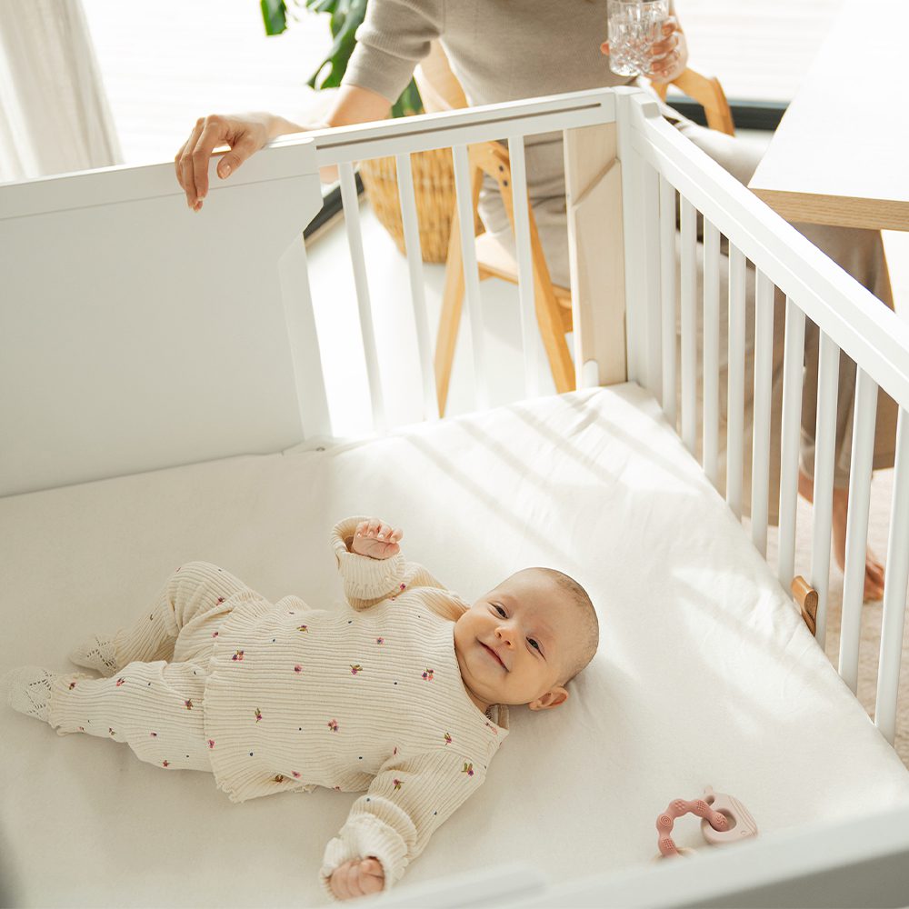 Maak de MoveMi® compleet met bijpassende accessoires zoals het Co-Sleeper Conversiekit, dat het bed omtovert tot een co-sleeper, of de tweelingmatras voor een comfortabel tweelingbed met slaapruimte voor twee. Daarnaast zijn er op maat gemaakte matrassets en hoeslakens beschikbaar voor zowel het slaap- als speeloppervlak.
