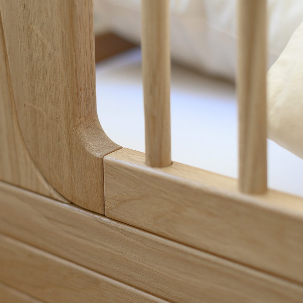 Vind hier prachtige eiken kindermeubels voor je moderne gezin. Alle producten zijn getest en voldoen aan de toepasselijke veiligheidsnormen om ervoor te zorgen dat kinderen ze veilig kunnen gebruiken en ermee kunnen spelen. Dit babybedje kan met je baby meegroeien omdat het vier verschillende standen heeft. Je kunt ook een conversiekit aanschaffen om het babybedje om te bouwen tot een juniorbed.