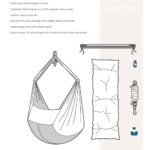 Het bevat ook: 1 veer met een draaibare karabijnhaak, veiligheidsriem en hoes, 1 veiligheids karabijnhaak met plastic en 2 plastic onderdelen voor bevestiging aan de metalen houders van de hangmat. Plafondhaak is niet inbegrepen.