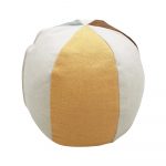 Een zachte, pluizige en lichtgewicht poef in de vorm van een strandbal. De canvas hoes heeft een flap met een verborgen metalen ritssluiting en de vulling van polystyreenparels is uitneembaar. De hoes is wasbaar in de machine!