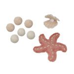 We zwemmen mee op de rug van mevrouw Turtle en ontdekken de wonderen van de oceaan. Laat je verrassen door de vormen en kleuren van de zeewonderen en een beetje fantasie doet de rest. Deze collectie laat de schoonheid van de wereld onder water zien door middel van zachtgekleurde tapijten met interactieve ontwerpen en speelgoed van textiel.