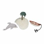 We zwemmen mee op de rug van mevrouw Turtle en ontdekken de wonderen van de oceaan. Laat je verrassen door de vormen en kleuren van de zeewonderen en een beetje fantasie doet de rest. Deze collectie laat de schoonheid van de wereld onder water zien door middel van zachtgekleurde tapijten met interactieve ontwerpen en speelgoed van textiel.
