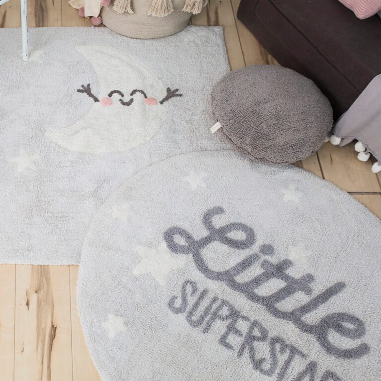 Maak de baby- en kinderkamer helemaal af met een zacht vloerkleed van Lorena Canals. Ze zijn prachtig om te zien, praktisch en duurzaam. Vlekken zijn namelijk geen probleem. De Lorena Canals tapijtjes was je gewoon op lage temperatuur in de wasmachine. De verschillende thema’s van de kleden zorgen ervoor dat er voor iedere kamer een geschikt tapijt is. De collectie bestaat uit veel verschillende vormen: vierkant, rond, rechthoekig en vrije vorm. Je kleintje kruipt en speelt op de zachte ondergrond.