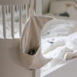 Gemaakt van superzacht, ecologisch katoen, hang je het maantje eenvoudig aan het ledikant, de verschoningscommode of elke andere plek waar je een handige opbergoplossing nodig hebt.