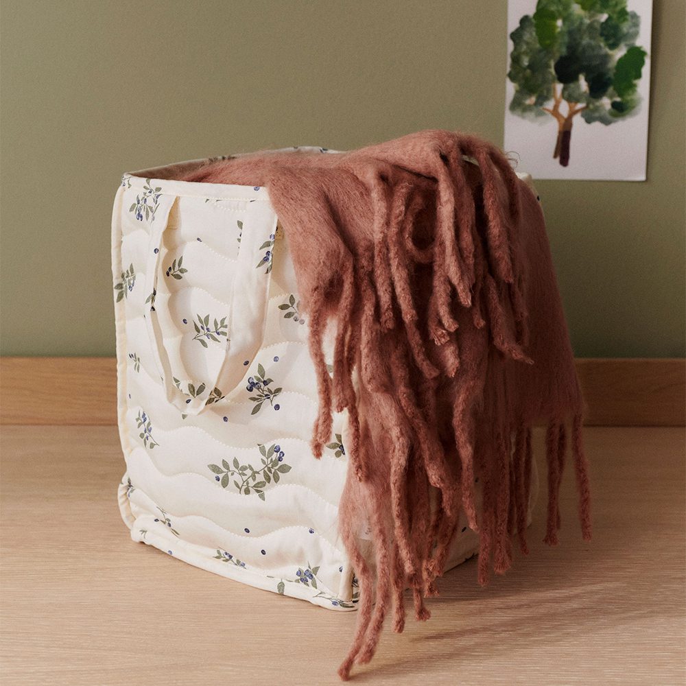Deze charmante opbergmand is niet alleen praktisch, maar ook een sfeervolle toevoeging aan de kinderkamer. De mand is gemaakt van zacht gewatteerd materiaal met een subtiel golvend stikselpatroon dat een speels en verfijnd accent toevoegt. Dankzij de ruime handvatten is hij makkelijk te dragen, zelfs voor jonge kinderen. Of het nu gaat om knuffels, boekjes, kleding of rondslingerende spulletjes – alles is in een handomdraai opgeruimd.