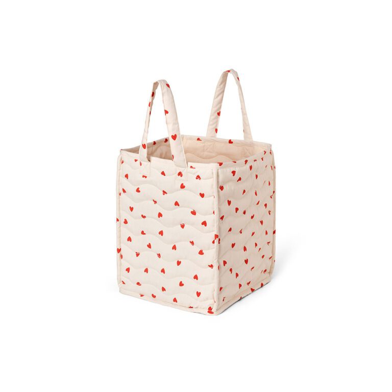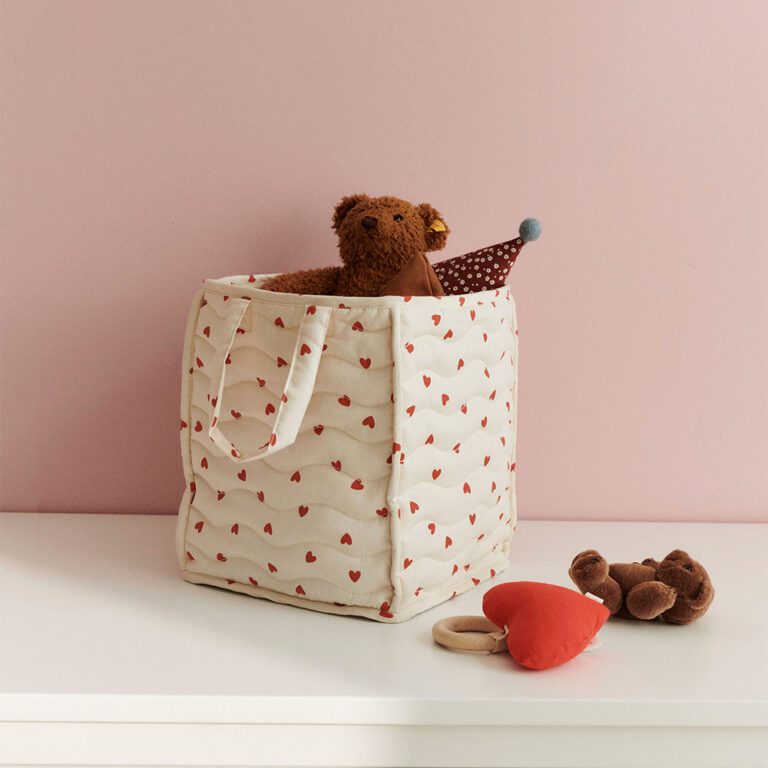 Deze charmante opbergmand is niet alleen praktisch, maar ook een sfeervolle toevoeging aan de kinderkamer. De mand is gemaakt van zacht gewatteerd materiaal met een subtiel golvend stikselpatroon dat een speels en verfijnd accent toevoegt. Dankzij de ruime handvatten is hij makkelijk te dragen, zelfs voor jonge kinderen. Of het nu gaat om knuffels, boekjes, kleding of rondslingerende spulletjes – alles is in een handomdraai opgeruimd.