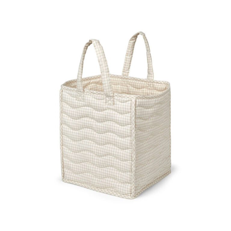 Deze charmante opbergmand is niet alleen praktisch, maar ook een sfeervolle toevoeging aan de kinderkamer. De mand is gemaakt van zacht gewatteerd materiaal met een subtiel golvend stikselpatroon dat een speels en verfijnd accent toevoegt. Dankzij de ruime handvatten is hij makkelijk te dragen, zelfs voor jonge kinderen. Of het nu gaat om knuffels, boekjes, kleding of rondslingerende spulletjes – alles is in een handomdraai opgeruimd.