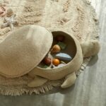 We zwemmen mee op de rug van mevrouw Turtle en ontdekken de wonderen van de oceaan. Laat je verrassen door de vormen en kleuren van de zeewonderen en een beetje fantasie doet de rest. Deze collectie laat de schoonheid van de wereld onder water zien door middel van zachtgekleurde tapijten met interactieve ontwerpen en speelgoed van textiel.