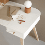 Aan dit bureau gaat jouw kind met plezier aan het werk. Het stijlvolle houten bureau is uitgerust met twee A4-lades en een verborgen ruimte met plek voor een laptop, elektronica en opladers. Het middelste deel van de tafel kan worden opgeklapt en gebruikt worden als schildersezel. Het maakt het bureau geschikt voor zowel tekenen als lezen. De box met drie vakken en een plank zorgt voor een opgeruimd bureaublad.