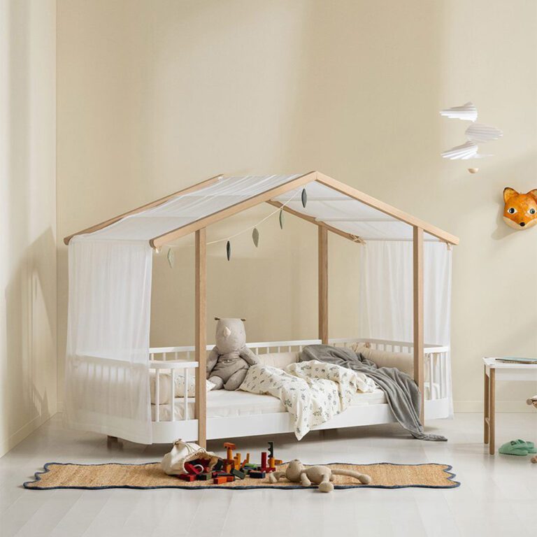 Zoals alle meubels van Oliver Furniture is ook het Wood Original House Bed zo ontworpen om jarenlang plezier van te hebben. Met het veiligheidsrek – apart verkrijgbaar – kan het bed al vanaf jonge leeftijd gebruikt worden. Wanneer jouw kindje in de nacht rustig slaapt kan deze eraf gehaald worden en geniet jouw kind voor lange tijd van het bed. Dankzij de lage instap van 32,5 cm kan je kindje al vroeg zelf in en uit bed stappen, helemaal volgens het Montessori-idee van vrijheid en zelfstandigheid. Een prachtig eerste Floorbed waarmee je kindje veilig en vol vertrouwen de wereld ontdekt.