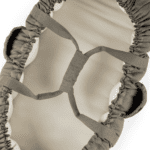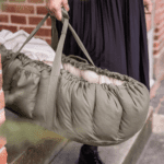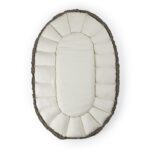 Gevuld met kapok, een natuurlijke vezel met antibacteriële eigenschappen, is het ideaal voor mensen met allergieën en biedt het uitstekende warmteregulering. Het nestje heeft veilige handvatten die aan elkaar geklikt kunnen worden voor veilig dragen en twee zijvakken voor essentiële spullen. Het past perfect in kinderwagens en vervangt traditionele reiswiegen en wanneer de zijkanten zijn ingeklapt, dient het als een speelmat.