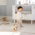 Dankzij de stevige houten onderplaat met vier wieltjes (voorzien van afneembare siliconenringen) glijdt Fanto geruisloos over de vloer zonder krassen achter te laten. En met het katoenen trekkoordje kunnen kinderen hem overal mee naartoe nemen, of het nu door de woonkamer is of op een fantasierijk avontuur. Fanto is afneembaar van het onderstel en gemakkelijk wasbaar op 30°C, dus ook na een dag vol knuffels en kruimels blijft hij fris en zacht.