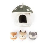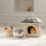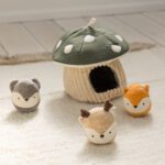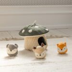 Deze zachte paddenstoel zit vol verrassingen! Tussen de bladeren ontdek je drie kleine bosdiertjes elk met een eigen geluid. Perfect voor een spelletje kiekeboe of om eindeloos in en uit het paddenstoelhuisje te stoppen. Terwijl je kindje grijpt, trekt en duwt, worden de fijne motoriek en zintuigen gestimuleerd. Spelenderwijs leert je baby over vormen, oorzaak en gevolg en verstoppen en terugvinden.
