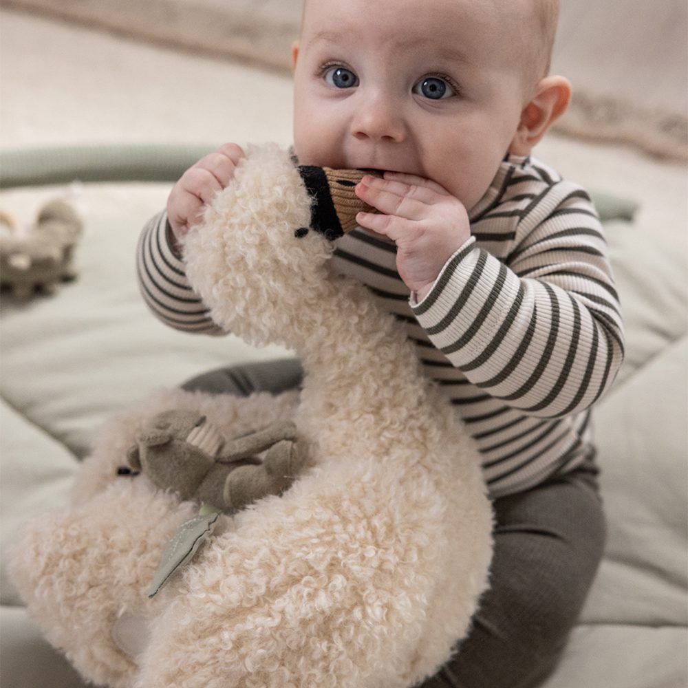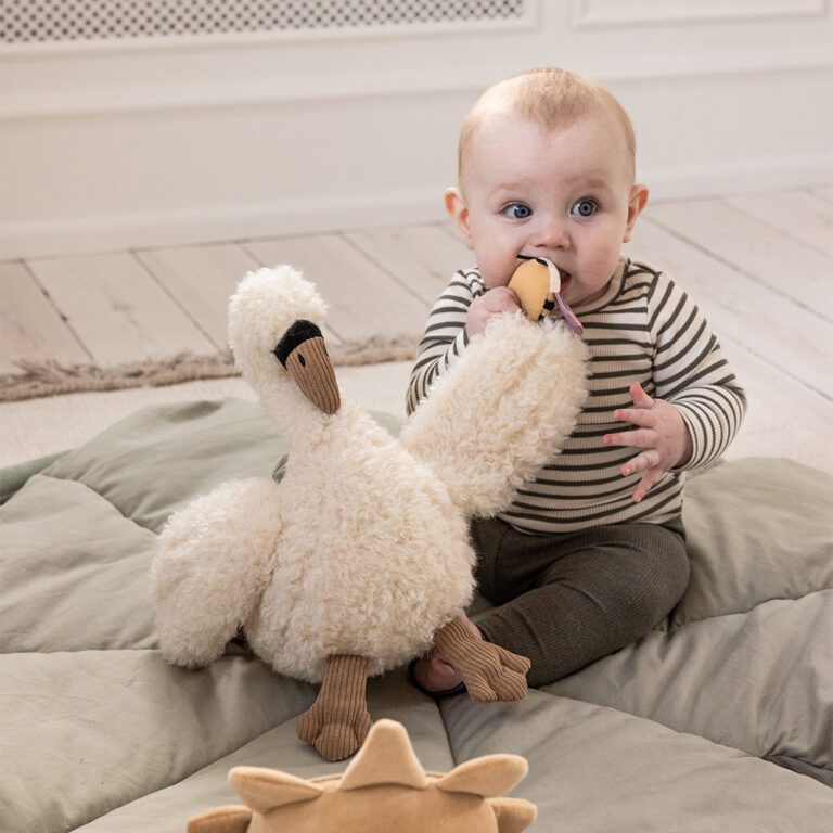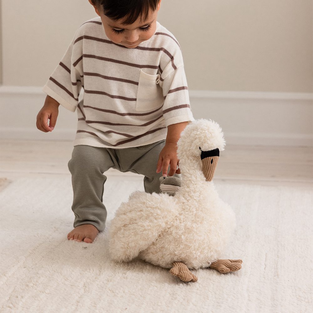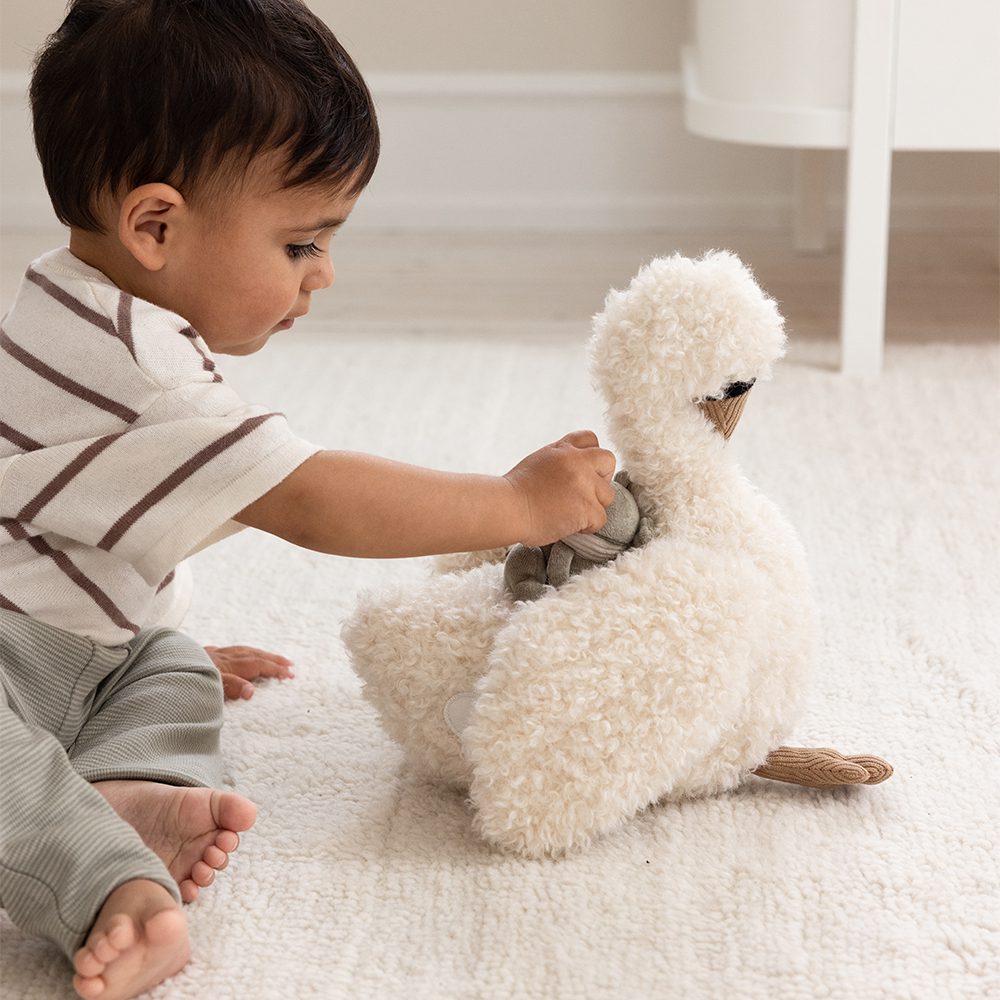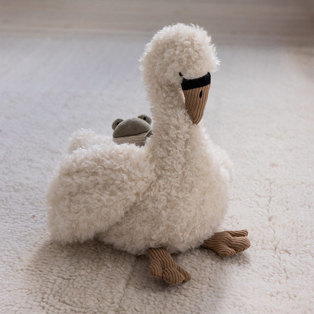 Dankzij het zachte design en de natuurlijke kleuren past de zwaan mooi in elke baby- of peuterkamer. En als er even niet mee gespeeld wordt? Dan is het een sfeervol decoratief item op de plank of commode.