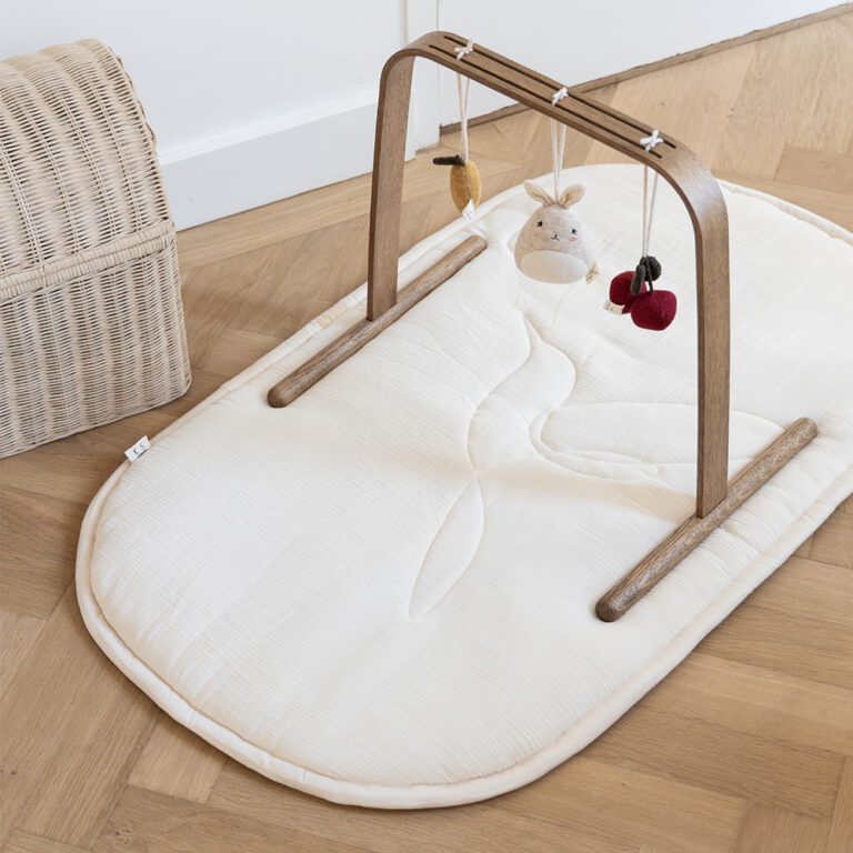 Dit prachtige baby speelkleed in een zachte crèmekleur is versierd met een subtiele gestikte kolibri, die een vleugje elegantie toevoegt aan de babykamer. Het speelkleed past perfect onder de Baby Gym van Kas Kopenhagen en biedt een comfortabele ondergrond voor je baby tijdens het spelen. Daarnaast past het kleed ook perfect in het Kai babybedje en kan het worden gebruikt als topmatras voor extra comfort en ondersteuning. Een praktische en stijlvolle keuze voor ouders die het beste willen voor hun kleintje.