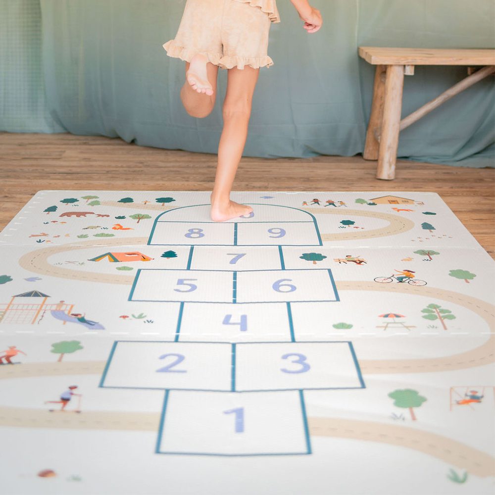 De EEVAA speelmat is zoveel meer dan een gewoon speelmat. Aan beide zijden bedrukt, biedt hij een kleurrijk en fantasierijk ontwerp dat kinderen uitnodigt tot eindeloos denkbeeldig spel. Draai je de mat om, dan verschijnt een stijlvol en subtiel patroon dat perfect in elke woonkamer past. Na het spelen transformeer je de mat in een handomdraai tot een stevige opbergdoos waarin al het speelgoed netjes opgeborgen kan worden.