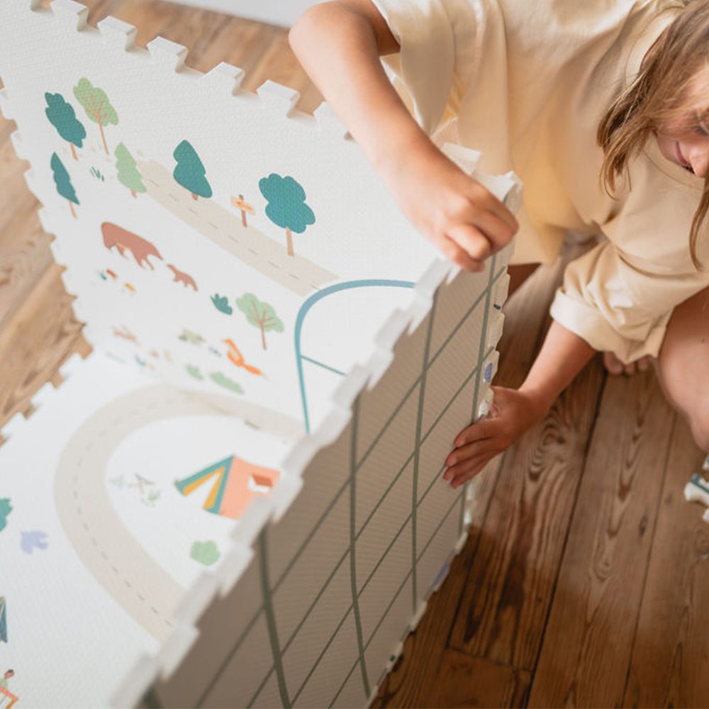 Gemaakt van veilige, niet-schadelijke materialen en getest volgens zowel Amerikaanse als Europese speelgoednormen, is de mat ook geschikt voor de allerkleinsten. Bovendien is hij duurzaam, spatwaterbestendig en eenvoudig schoon te maken, hoe intensief het spel ook is. Met de meegeleverde randstukken creëer je een veilige en nette afwerking, waardoor de EEVAA speelmat een stijlvolle en praktische toevoeging is aan elk gezin.